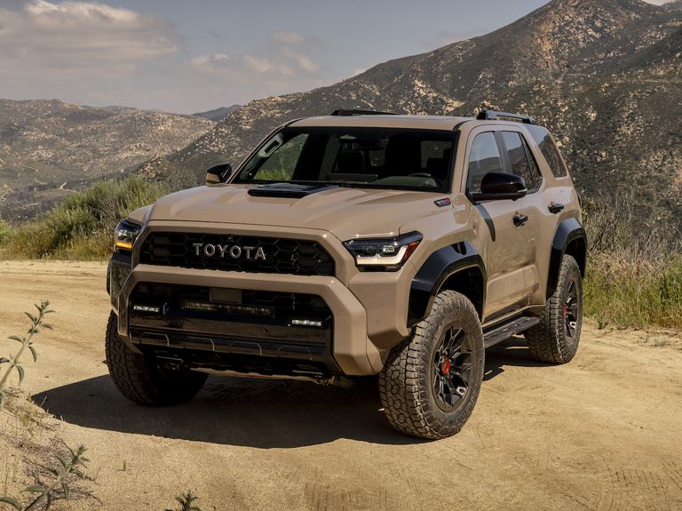 And yet the 2025 4Runner is no minor update – it’s an all-new vehicle, inside and out. This is immediately clear under hood, where the outgoing 4.0-liter V-6 engine has been replaced by Toyota’s tried-and-true 2.4-liter turbo four-cylinder, good for 278 hp and 317 lb.-ft. For the first time, higher trims (there are nine total, including the new Trailhunter and Platinum editions) of the 4Runner get an i-Force Max hybrid engine that boosts those numbers to 326 hp and 425 lb.-ft. If the word “hybridization” in relation to Toyota’s off-road champion gives you pause, rest assured there’s no mistaking the new 4Runner for the award-winning Prius; this hybrid engine is designed to optimize performance, rather than maximize fuel economy.