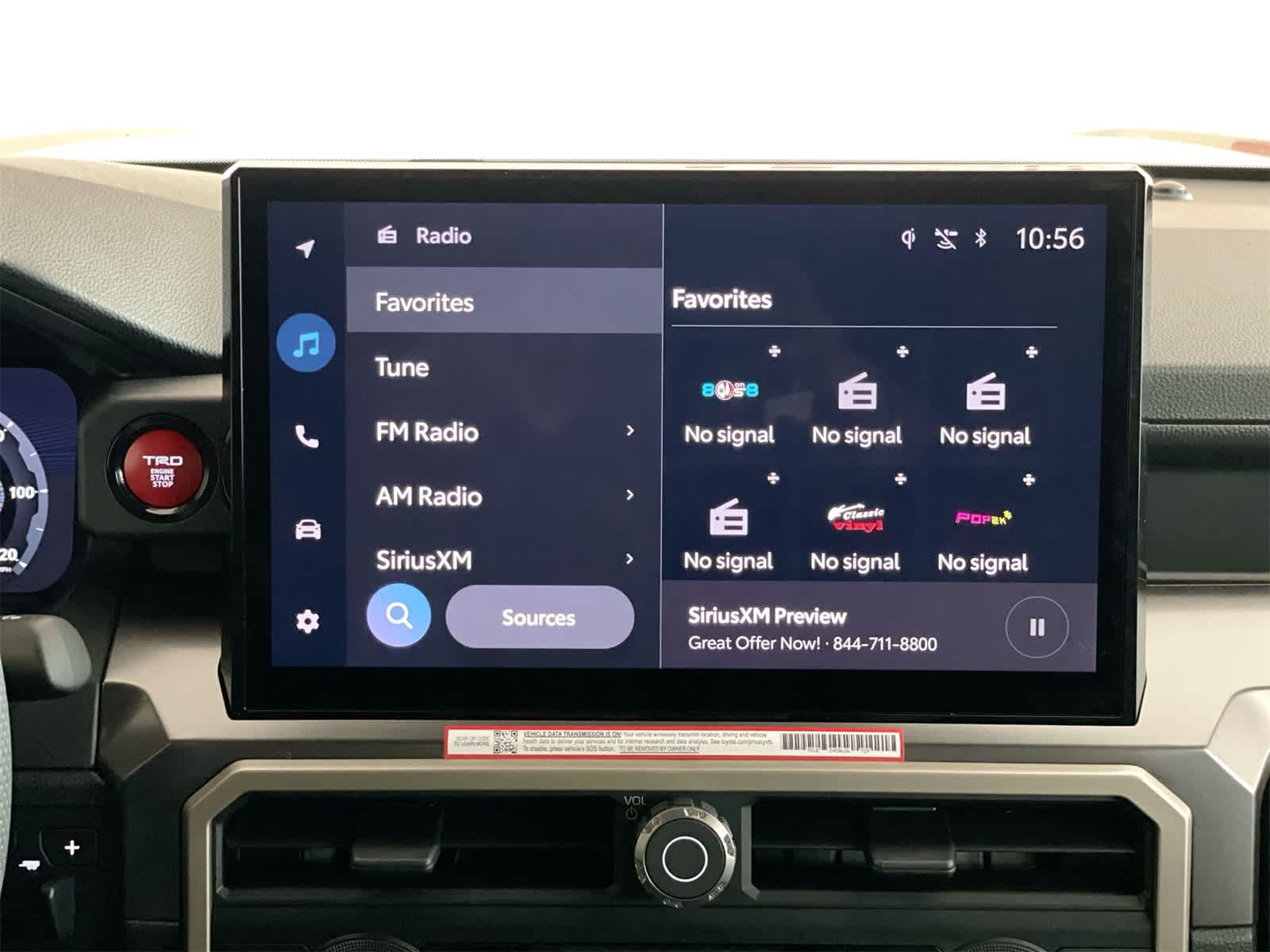 71. Service not available everywhere or in every vehicle. Depends on 4G cellular network availability, a cellular connection and GPS signal. Without any one or more of these things, operability may be limited or precluded. Up to 5 devices can be supported using in-vehicle connectivity. Services may vary and are subject to change without notice. Data charges may apply. Requires separate subscriptions to third-party provider services. Valid in the contiguous U.S. and Alaska. Go to https://myvehicle.att.com/#/toyota/learn?language=en&country=US for terms and conditions. The Wi-Fi Connect trial begins at the time of enrollment and expires the earlier of 3GB data use or the 1-month trial period ends. Trial begins at activation and expires the earlier of 3 GB data use or 1 mo. Valid in contiguous U.S. and Alaska. See https://myvehicle.att.com/#/toyota/learn?language=en&country=US for terms and conditions.