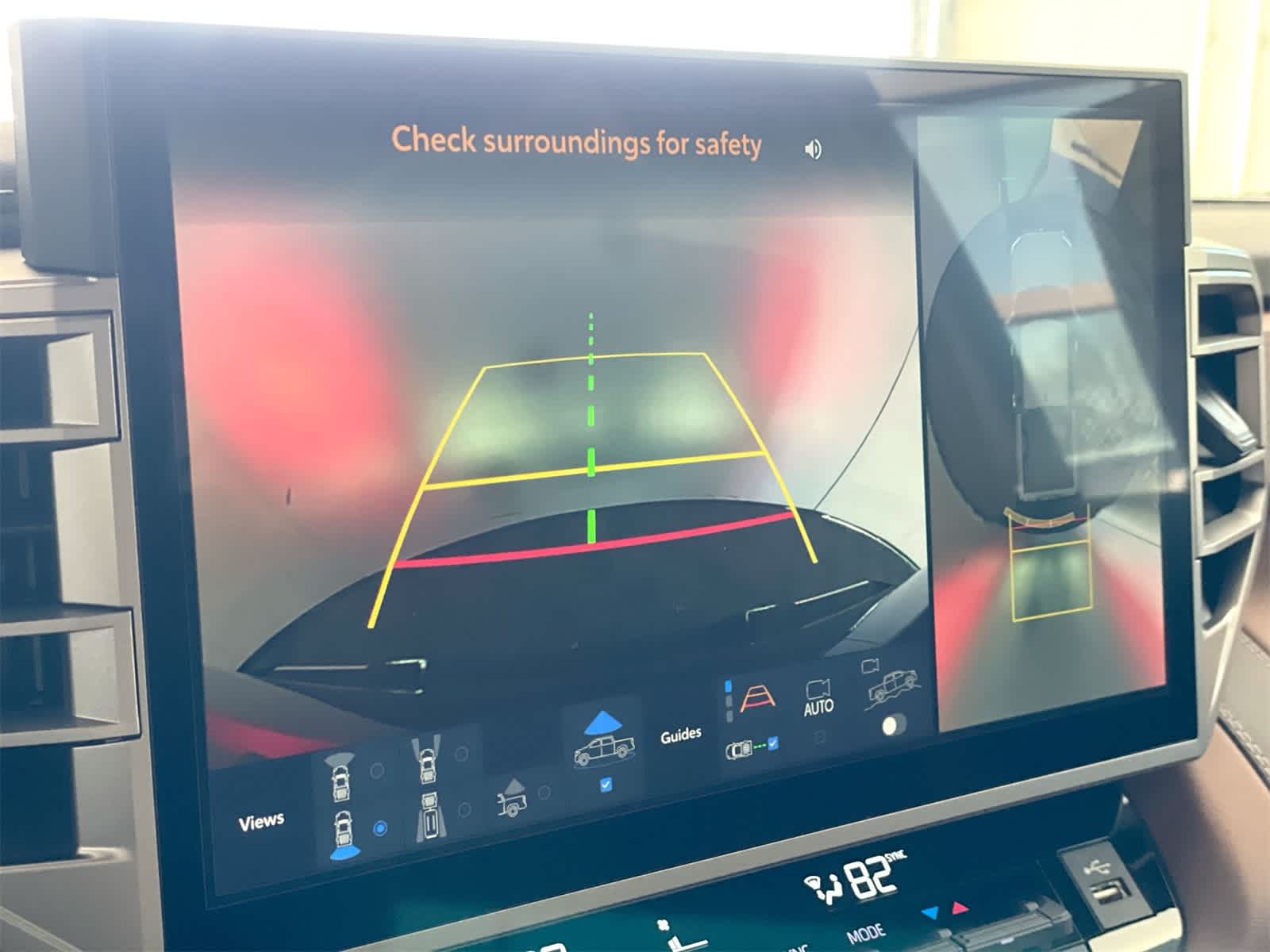 48. The Panoramic View Monitor does not provide a comprehensive view of the area surrounding your vehicle. Look around to confirm clearance. See Owner’s Manual for limitations.