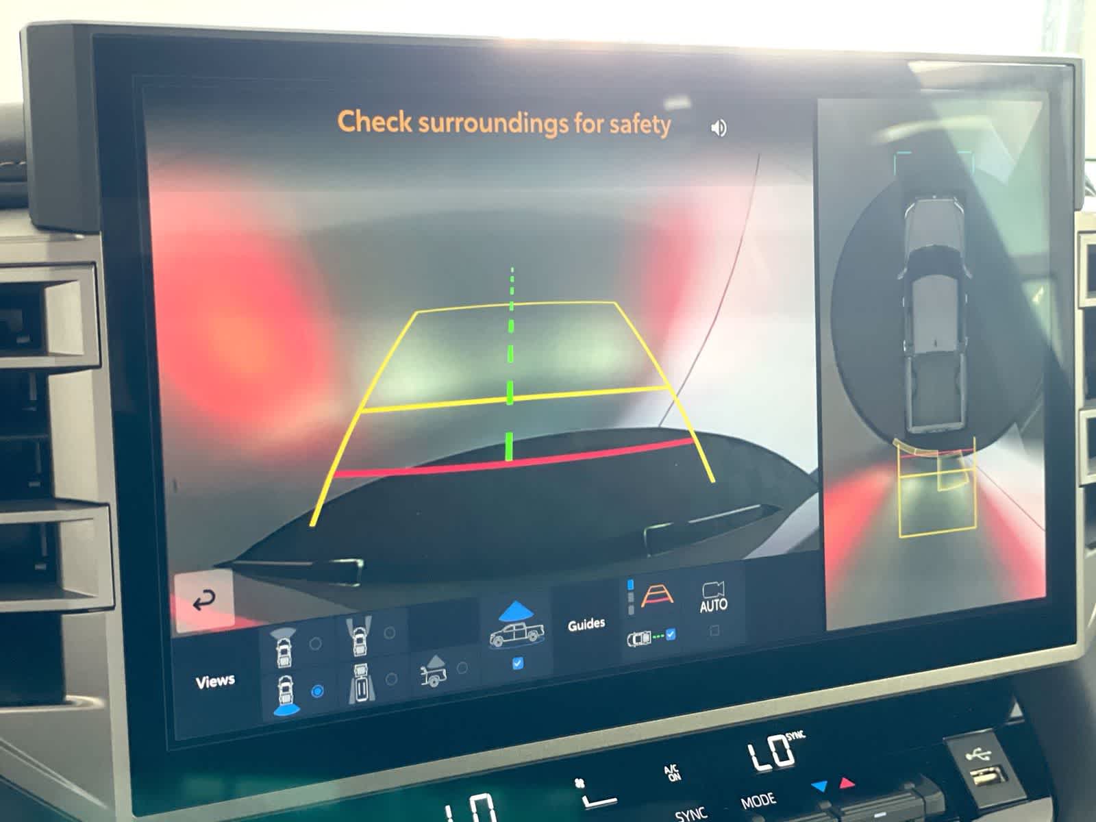 48. The Panoramic View Monitor does not provide a comprehensive view of the area surrounding your vehicle. Look around to confirm clearance. See Owner’s Manual for limitations.
