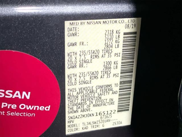 2019 Nissan Murano Platinum 20/28 City/Highway MPG Great Value!, Remote Start, Many Extras!, Leather, WeatherTech Floor Mats, 160 Point Inspected, Service Records Available, Oil Change Performed, Detailed Inside and Out, Local Trade In, Bluetooth® Wireless / Hands Free, CVT with Xtronic, 11 Speakers, 4.667 Axle Ratio, Accessory Illuminated Kick Plates, Active Cruise Control, Air Conditioning, AM/FM/CD/MP3/WMA Audio System, Auto High-beam Headlights, Auto tilt-away steering wheel, Auto-dimming Rear-View mirror, Automatic temperature control, Bumpers: body-color, Climate-Controlled Front Bucket Seats, Compass, Delay-off headlights, Driver door bin, Driver vanity mirror, Emergency communication system: NissanConnect Services, Front Bucket Seats, Front Center Armrest, Front dual zone A/C, Front fog lights, Front reading lights, Fully automatic headlights, Garage door transmitter: HomeLink, Heated door mirrors, Heated front seats, Heated rear seats, Heated steering wheel, Illuminated entry, Illuminated Kick Plate, Low tire pressure warning, Memory seat, Navigation System, NissanConnect featuring Apple CarPlay and Android Auto, NissanConnect Services Powered By SiriusXM, Outside temperature display, Overhead console, Panic alarm, Passenger door bin, Passenger vanity mirror, Power door mirrors, Power driver seat, Power Liftgate, Power moonroof, Power passenger seat, Power windows, Radio data system, Rear Bumper Protector, Rear reading lights, Rear seat center armrest, Rear window defroster, Rear window wiper, Remote keyless entry, Roof rack: rails only, Security system, Semi-Aniline Leather-Appointed Seat Trim, Speed control, Speed-Sensitive Wipers, Splash Guards, Split folding rear seat, Spoiler, Steering wheel memory, Steering wheel mounted audio controls, Telescoping steering wheel, Tilt steering wheel, Turn signal indicator mirrors, Variably intermittent wipers, Ventilated front seats, Wheels: 20 Dark Hyper Silver. FWD CVT with Xtronic 20/28 City/Highway MPG 3.5L V6 DOHC 24V
