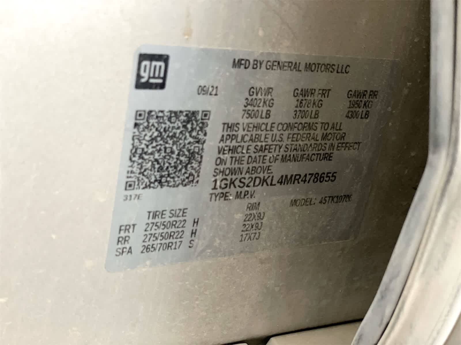 - Tires, 275/60R20SL all-season, blackwall (Standard with (RTL) 20" 6-spoke multi-dimensional polished aluminum wheels only.)