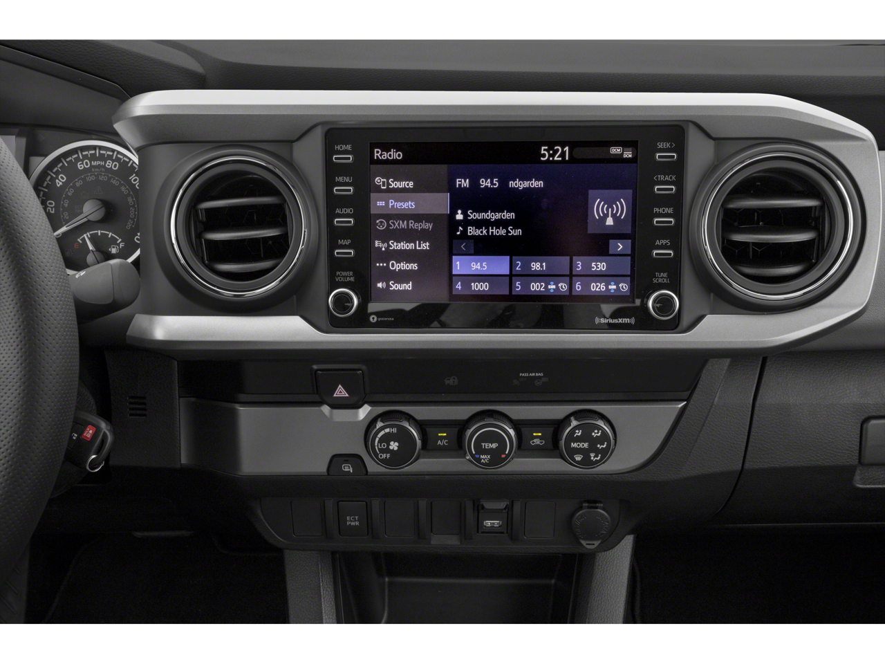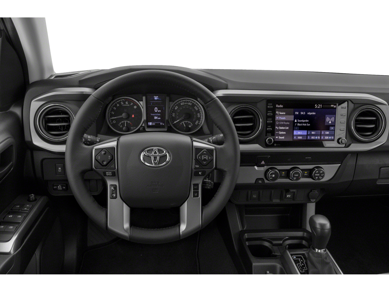 Back-Up Camera, Satellite Radio, iPod/MP3 Input, Onboard Communications System, Trailer Hitch, Aluminum Wheels, Keyless Start, Dual Zone A/C, Apple CarPlay®, WiFi Hotspot, Brake Actuated Limited Slip Differential, Smart Device Integration MP3 Player, Privacy Glass, Keyless Entry, Steering Wheel Controls, Child Safety Locks. Toyota SR5 with Black exterior and Cement interior features a V6 Cylinder Engine with 278 HP at 6000 RPM*.