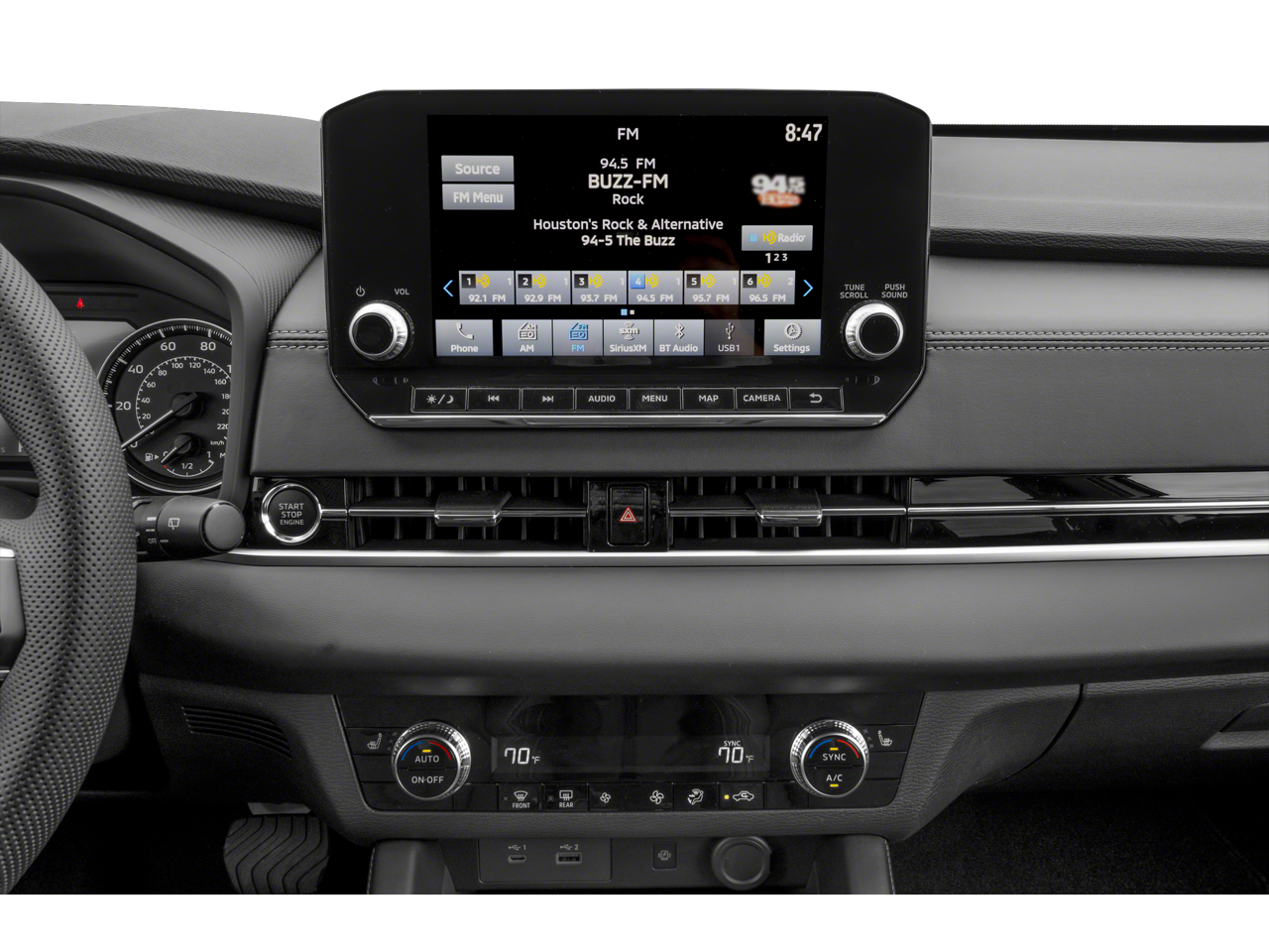 - Radio: AM/FM 9.0" Navigation w/Smartphone Link -inc: 6 speakers, Apple CarPlay, Google Android Auto, SXM all-access and SXM traffic and travel link w/90-day subscription, Mitsubishi Connect, HD Radio, Bluetooth® wireless technology, steering wheel controls for phone, audio and voice recognition and USB ports