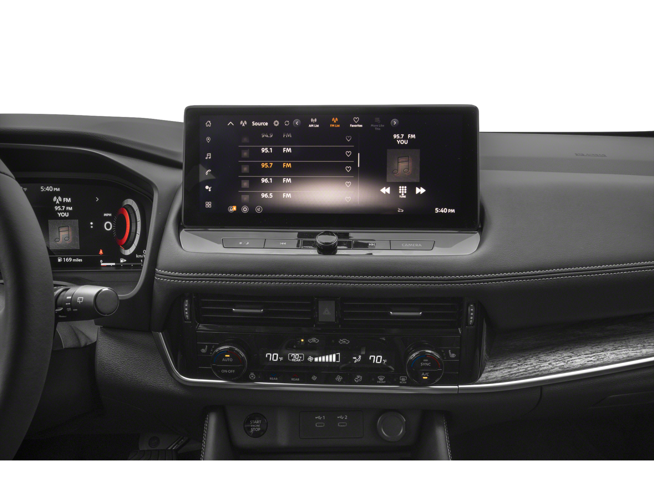 - Radio: AM/FM NissanConnect w/Navigation -inc: hybrid radio, wireless Apple CarPlay, wireless Android Auto, 12.3" color HD display, Bluetooth®, 2 front USB type-C, Wi-Fi hotspot, Alexa Built-In, Google Built-In, NissanConnect Services powered by SiriusXM, SiriusXM Traffic and SiriusXM Travel Link